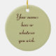Lightweight, smooth, pure white ornament with nice sheen. Perfect size to be seen from across the room ... and to attract closer inspection! Price was great for ordering enough for the whole family! Clear, bold black design just as requested. Matches the order exactly. Just so nice!