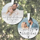 Personalized Our First Christmas Together Ornament. Celebrate your first holiday season together with this elegant, custom ornament, perfect for capturing the joy of your relationship. The front features space for a treasured photo of the two of you, adorned with the phrase "Our First Christmas Together" in beautiful script calligraphy and a serif font, along with your names and year for a personalized touch. The back offers room for a second favorite photo, adding even more warmth and meaning to your keepsake, accompanied by "Merry Christmas" in the same delicate script, with your names and year displayed smaller at the bottom. Black heart accents add a sweet, romantic touch, while a soft white ombre at the bottom of each photo creates a smooth, refined transition. Both the black font and heart colors can be customized to suit your style. This ornament is perfect for celebrating your first Christmas together and makes a thoughtful addition to your holiday decor or a heartfelt gift for a special couple.