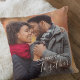 Remember your first Christmas together as a couple or family with a custom photo pillow. The photo template is set up for you to add two of your favorite pictures - one on the front and one on the back. The text overlay on the front reads "Our First Christmas Together" in elegant script and bold uppercase typography. The photo on the back has no overlay, so you can use the pillow all year round if you wish. This design is available with a black overlay and a white overlay so you can pick the one that best suits your photo.