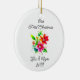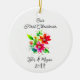 Add your names and the year to this cute personalized, "Our First Christmas" Christmas ornament with pretty watercolor flowers.