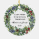 Beautiful wreath with blue and red berries and pine cones has a place for your favorite photo inside. On the back side It says "Our First Christmas Together" and you put your names and the year inside. You can find lots more ornaments in my shop at www.zazzle.com/digiscrapthat. These ornaments make wonderful gifts tied onto a loved ones package!
