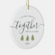 Lightweight, smooth, pure white ornament with nice sheen. Perfect size to be seen from across the room ... and to attract closer inspection! Price was great for ordering enough for the whole family! Clear, bold black design just as requested. Matches the order exactly. Just so nice!