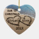FYI: The popular heart shape with this design is now available in acrylic. Easily add your own custom names or any text (shown example says: "Our 1st Christmas" , and just add the year desired) with names of the bride and groom in the hearts to personalize this beautiful popular heart shape holiday ornament with an original photo of two hearts written in the sand along the blue ocean water to signify love and romance. Great personalized concept for love, travel, just married, and upcoming summer save the date weddings. A fun, cute, personal and unique keepsake ornament to give to that special someone, girlfriend or boyfriend, bride and groom or any sweethearts couple. This design is on both sides!