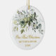 Modern Elegant Watercolor Greenery Couple Our First Christmas Ornament includes beautiful watercolor botanical greenery, eucalyptus leaves other beautiful foliage. Gold Script.