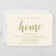 Our first home, new home housewarming party invitation card ("our first home") in yellow gold theme, with cute little heart. Planning a housewarming party in celebrating your new home with your family and friends? Invite your guests with this beautiful and perfect Rustic calligraphy themed housewarming party invitation card.