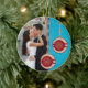 The text and photo on this Our First Christmas together photo Christmas ornament are easy to customize. Non-traditional red, aqua blue, and gold Christmas tree ornaments design. Make sure to check out the back as well, as there you can customize it with your names! To change the text and photo use the personalize options. For more extensive changes to the ornament, including changing the font, font size, font color, text placement, picture size and/or picture placement, use the customize it option.