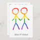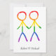 This wedding invitation features a beautiful and heartfelt design to officially announce your special day. The graphic depicts two men, in the form of elegant stick figures, holding hands. The figures are colored in a beautiful rainbow, symbolizing love and diversity. This invitation is a wonderful way to bring a cohesive and meaningful touch to your stationery while providing guests with an elegant first look at your wedding celebration.