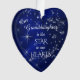 Our best selling granddaughter Christmas ornament has been updated this year! It features a silver star and snowflake pattern against a deep blue gradient background. In the center is your customized text in white. It says "Our Granddaughter is the STAR in our HEARTS. The back of the ornament has the silver star and blue background as a border, with a white heart interior that holds your custom text in matching blue. This is a keepsake ornament that your granddaughter will always treasure.