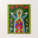 Folk Art style jigsaw puzzles features Our Lady of Guadalupe as a serene angel prayer for peace. A perfect family project for the holidays.