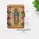 This is a beautiful traditional Catholic Spanish image of Our Lady of Guadalupe on a scroll with red and pink roses. All text and fonts are in Spanish and may be modified.