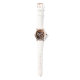 I only have one complaint. I ordered the watch with clear case and strap, and what was sent was white case and strap. I'm going to keep it because 1) it looks very nice in white, and 2) it would take too long to get a replacement made and sent in time for my occasion. Aside from the mix up with the color, the watch does look very good in white. The purple dial is actually sparkly which did not show in the online images. That was a nice surprise. If you like Swatch watches this is very similar to those. It's 33.6mm in diameter, 10.5mm thick, and 40.6mm lug to lug. Stainless steel case back says 3ATM/30m WR, so no swimming or showering or submerging this one. If you like Woodstock, this is a great choice.