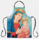 Great color and even though I ordered the kid size, it covers well enough to use during the holidays. I am not a big woman and prefer a shorter apron. I stand 5"6" and the length of the garment goes to mid-thigh. The tie straps fit well at my waist and even though there is no neck strap adjustment, the opening is plenty big enough. I am happy with the size and fit. I am sharing my apron with my 10 year old grandson, too! The color is vibrant and looks good, as shown on the website. The stitching looks strong and reinforced. Photographed is front side and back side of the apron, reinforced straps and coloring. My phone camera may not be the best at showing the details.