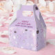 This design showcases a playful Halloween theme with soft purple background. A cute ghost, a witch hat, is accompanied by fun elements like a delicate web and a bubbling witch's cauldron, setting a festive yet sweet tone. Personalize the Favor Boxes with your child's name and party details for a unique, heartwarming touch that perfectly captures the spirit of your little one's first birthday celebration.