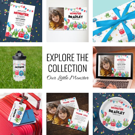 Celebrate your little monster's special day with our fun and modern monster-themed birthday party! Our monster paper party napkins features watercolor monsters in shades of green, blue, and red, with yellow stars.