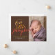 This Halloween/fall themed baby birth announcement features the words "our little pumpkin" in modern script typography in fall colors on a brown background. Your baby's birth details are displayed underneath and his or her photo sits to the right. Photography © Storytree Studios, Stanford, CA