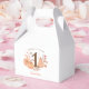 This soft and eye-catching favor box is perfect for a first birthday party with a fall or autumn theme. It features the birthday year large and center, surrounded by a beautiful illustration with pumpkins, and autumn leaves. The top line reads "Our little pumpkin" and goes great with the theme. This gender neutral design shows the coziness of the fall season in a stylish way.