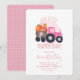 Our Little Pumpkin Pink Tractor 1st Birthday Invitation