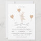 Sweet first birthday party invitation features a cute bunny with heart balloons and "our little sweetheart is turning one" text, perfect for a February or Valentine birthday, but also adorable for any time of the year! Trendy script and neutral and blush pink watercolor elements add a modern style to the pretty birthday celebration card, and the back is a chic heart pattern. Shop this store for coordinating items!