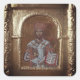 Byzantine icon of Our Lord Jesus Christ depicted as a High Priest forever in the Order of Melchizedek holding the Gospel of St. John opened at verse 10:11 showing the Latin text: 'Ego sum pastor bonus. Pastor bonus animam suam dat pro ovibus suis' (I am the good shepherd: the good shepherd giveth his life for the sheep).