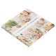 This modern design is composed of simple serif typography that is light and airy. Add 6 photos. These photos are masked against square/rectangles. To get a better photo arrangement, make sure to unmask the photos. Then make your photo adjustments. After adjusting, select either square or rectangle shape and the photo, then click MASK.