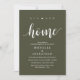 Our new home, housewarming party invitation card. Planning a housewarming party in celebrating your new home with your family and friends? Invite your guests with this housewarming party invitation card, in beautiful and perfect modern rustic script, olive green theme.