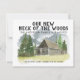 Our New Neck of the Woods Watercolor Pine Trees Cabin Wood House Mountains Moving Announcement Postcard