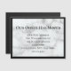 The black display text says 'Our office has moved'. You can customize your moving announcement with your company's name, new address, and phone number. The moving announcement has a faux white marble design and a black border.