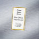 A placeholder image is above the text on this white magnetic business card. You can replace the image with your business logo. You can edit the text to show a custom message (Shown: Our Office Has Moved New Address with placeholder text for your new address). The faux (not foil) gold border is artwork.