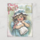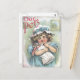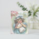 Vintage artwork with little girl holding her dressed up kitten