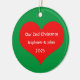 Personalized names and printed with cute red heart design in solid green background. Feel free to customize by adding your own texts, names or photos. You can add your photo on the back side of the ornament easily!