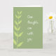 Simple sincere non-religious sympathy card with modern bamboo design in sage green colors. The front says, "Our thoughts are with you" in a handwritten script type font. The inside text, which you can edit if you like, says, "Our deepest sympathy during this difficult time." A secular condolence card that is appropriate for many different types of people and circumstances.