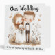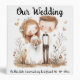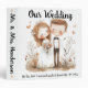 Capture the cherished memories of your special day with this beautifully designed wedding album. The cover features an adorable illustration of a bride and groom standing together, surrounded by whimsical floral elements and hearts. The bride holds a bouquet of flowers, and the groom is dressed in a bow tie and suspenders, adding a charming touch to the artwork. The title 'Our Wedding' is prominently displayed at the top in elegant script, while the spine is personalized with 'Mr. & Mrs. (your name) in a stylish font. At the bottom of the cover, a heartfelt message reads, 'On this date I married my best friend(your date) making this album a perfect keepsake to commemorate your wedding day.