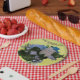 closeup. That's bright and colorful. That's on a PAPER PLATE.