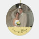 This elegant ornament makes a great keepsake for a married couple. The wedding picture has an scallop edge on the bottom and it reads "Our Wedding" on a fancy font. Add the wedding date and the names of the bride and the groom on the back.