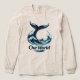 Featuring a dynamic whale tail rising from powerful sea waves, this artwork symbolizes the connection between nature, water, and our planet. The circular wave composition represents “Our World” — a reminder that the ocean is the heart of life on Earth.
