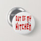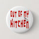 Out of my Kitchen saying for cooks with an attitude, moms with Momitude and those slaving over a hot stove everywhere. Fun food slogan in blood red scratchy letters with a meat cleaver in the 'N'
