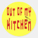 Out of my Kitchen saying for cooks with an attitude, moms with Momitude and those slaving over a hot stove everywhere. Fun food slogan in blood red scratchy letters with a meat cleaver in the 'N'
