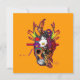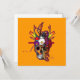 Contemporary Interpretive Southwestern iconic skull art of Día de los Muertos (Day Of The Dead) celebration by artist Margaret Loftin Whiting with skull, mask, flowers, bird and flowing ribbons. Digital collage poster art alive with bright colors of the Southwest.