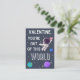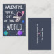 This cool Valentine's Day card features an astronaut in space with the words, "Valentine, you're out of this world". Stars, the Earth, and two other planets are in the background, and one pink heart is held in the astronaut's hand. This card is great for kids who need to bring Valentines into the classroom. The back includes customizable text where you can add your child's name. Check out the collection for four more space-themed classroom cards.