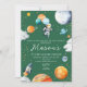 Ideal for a space or galaxy birthday celebration, this invitation invites friends and family to join the adventure and celebrate your child’s first year with an exciting outer space theme.
