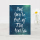 "Dad, You're Out of this World" reads the message on this card in bold white lettering against a blue and green star-filled outer space sky. With a coordinating graphic inside and a happy Father's Day message it's the perfect cards for dads who love stargazing and sci-fi movies.