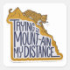 Clever die-cut sticker featuring a cautious leopard on a rocky peak, with the witty pun 'trying to mount-ain my distance' in a stylized, landscape-inspired font. Perfect for outdoor enthusiasts, pun lovers, and those navigating social distancing with humor.