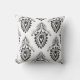 This outdoor accent throw pillow is shown with a lovely black and white damask art print.