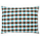 This outdoor dog bed is shown with a plaid print design.