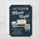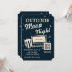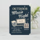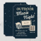 Create a magical evening under the stars with this charming Outdoor Movie Night ticket invitation. Designed in a ticket-style layout, this card features playful popcorn graphics, a movie screen frame, seating details, and a QR code area for a modern event touch.