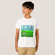 This t-shirt design features a playful scene of a boy flying a kite. The design captures the excitement and freedom of the outdoors, with the boy standing against a backdrop of blue skies and fluffy clouds.