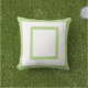 Outdoor throw pillow is shown in a modern lime green and white design.