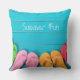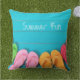 Outdoor throw pillow is shown in with a cute summer time flip flops photo print.