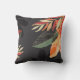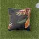 This outdoor throw pillow is shown in a large tropical palm print.
