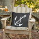Outdoor throw pillow shown in black and white with a anchor print.